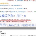 技术经验如何更新dedecms手机版网页4手机版首页更新操作 需要修改模板路径,如图所示,修改后,点击更新主页HTML 这样,大功造成了,可以生成手机版首页 如果觉得这样改每次都比较麻烦,有两种方法, 第一,自己修改的方法,简单不产生多余的东西,本来小贱君要做个小插件包的,咳,咳,懒了点,还是修改一下吧。 第二,网络大神开发的插件包,可以所有手机版页面都生成静态,功能强大, 介绍一下的修改方法: 1...2019-12-05 13:03:50阅读(1260)标签:dedecms